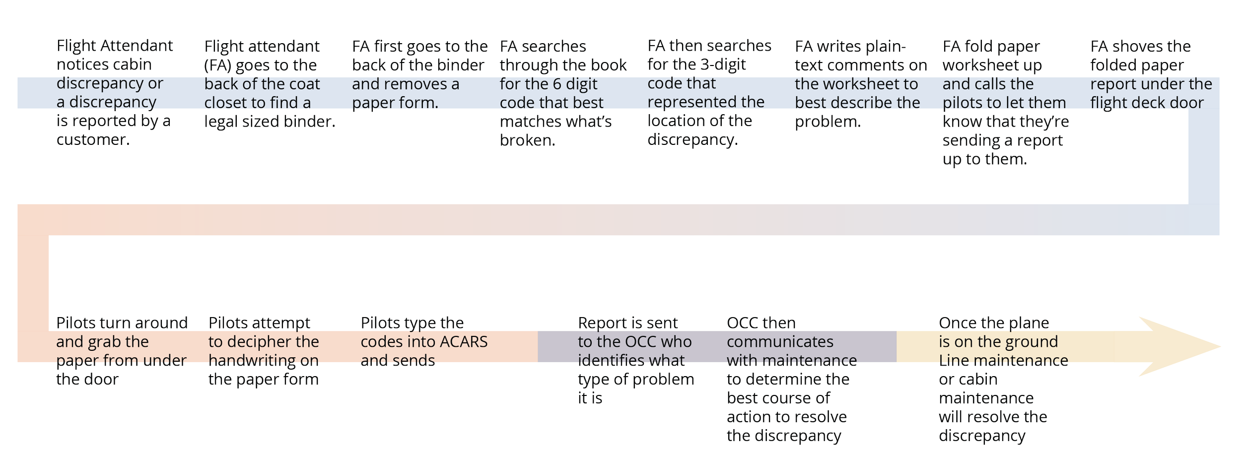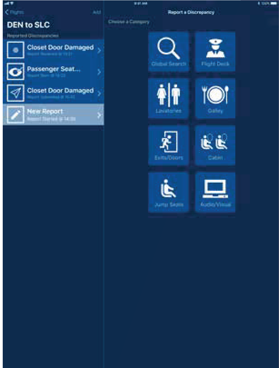 This project was to create a tool that would replace the current cabin discrepancy reporting tool to lessen the burden on the flight attendants and pilots.