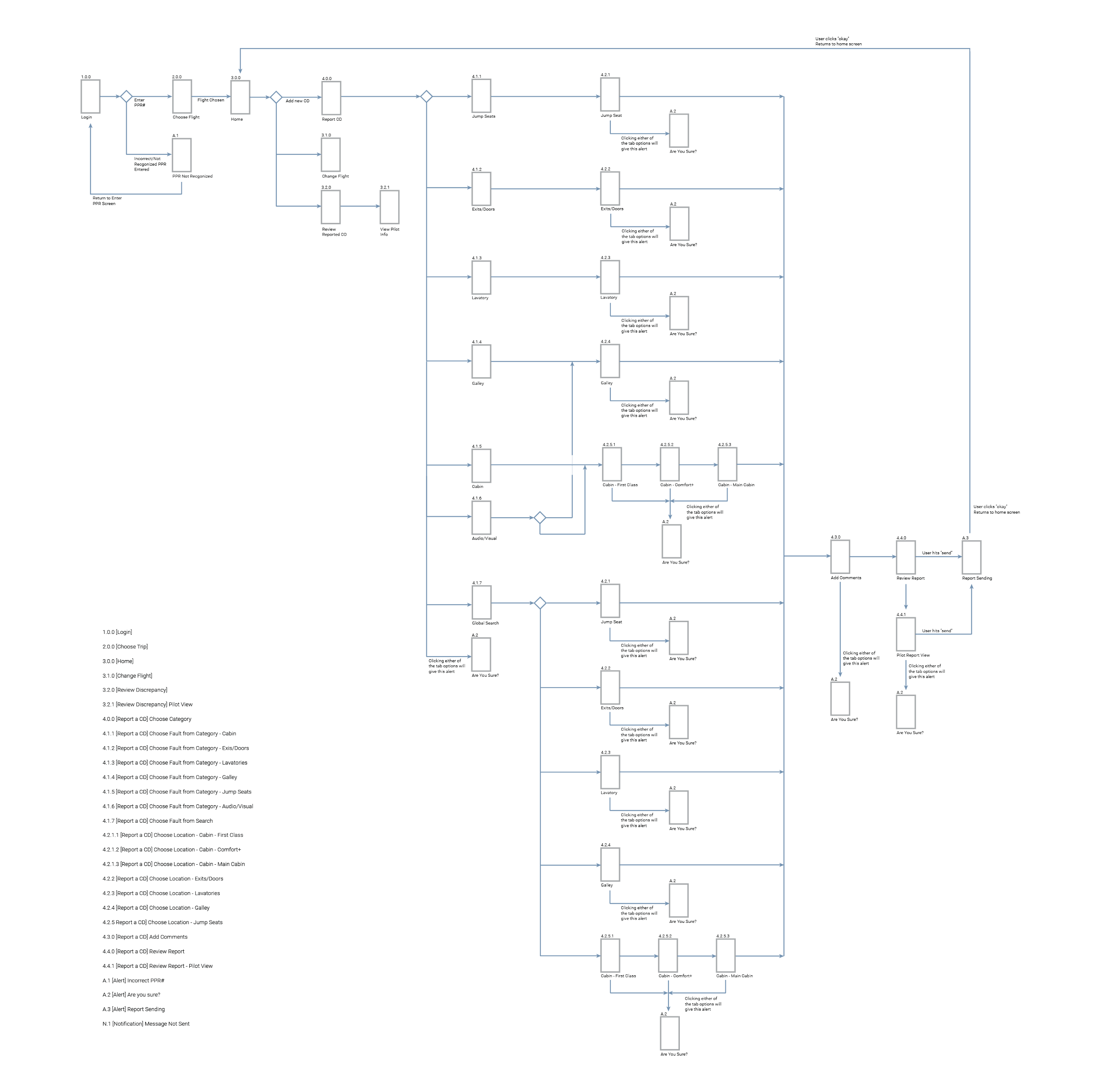 To make sure I had all of the potential screens I needed to complete the experience, I mapped out what the user flow would be for both the Flight Attendant user and the Pilot User.