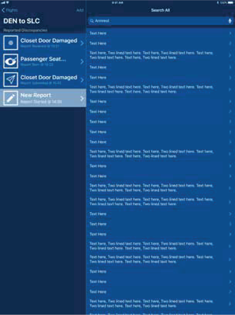 We created the application so that the app visualized the locations within the aircraft, for each aircraft type and configuration, such that the flight attendants didn’t have to memorize that on their own. We also created a database for all of the cabin discrepancy codes so that flight attendants could key-word search for discrepancies, rather than trying to search alphabetically by the first word in the description.